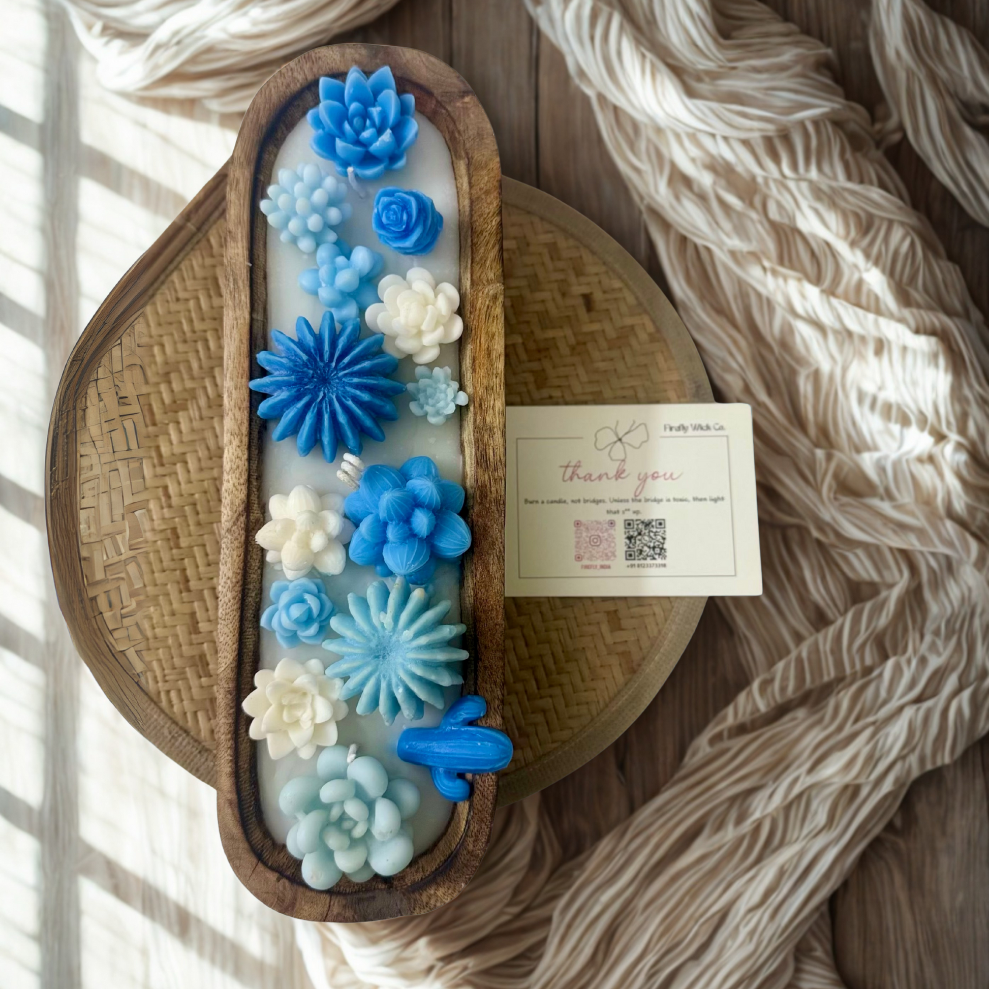 Elevate your space with Sky Bloom, a handcrafted wax bar inspired by the calm elegance of open skies and blooming serenity. Nestled in a rustic wooden tray, each piece features sculpted florals in soft blues and whites—evoking clouds, petals, and peaceful moments. Whether gifted or displayed, it’s a gentle reminder to breathe, dream, and glow.