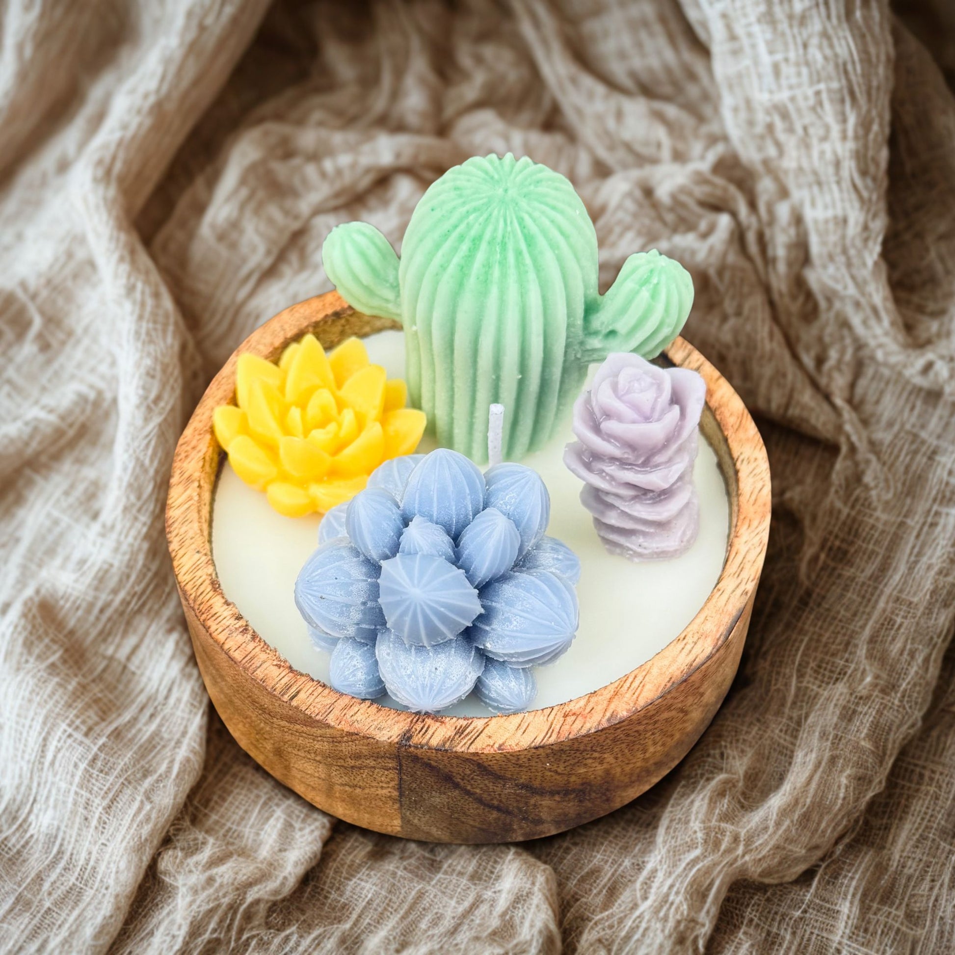 A handcrafted candle inspired by desert blooms and sculpted serenity with beautiful pastels. Featuring wax succulents and cacti in vibrant hues, Cactasya brings nature’s quiet resilience into your space—grounded, playful, and soulfully green.