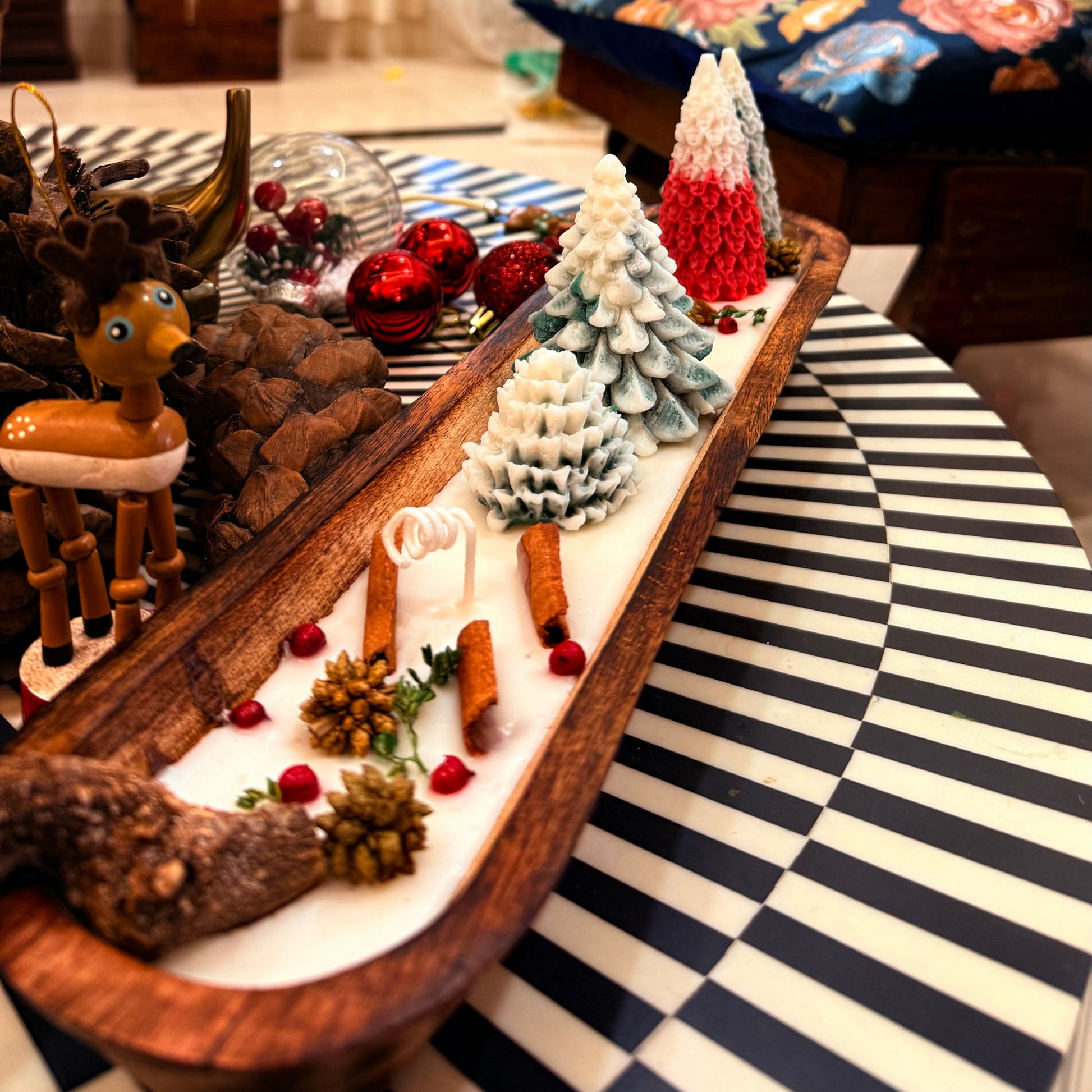 Give the gift of warmth this season with our Christmas Tree Forest Dough Bowl Candle. A unique, handcrafted holiday gift, this large candle features a trio of charming pine trees and winter berries nestled in a rustic, reusable dough bowl.