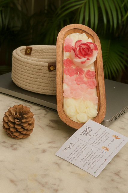 Indulge in the luxurious, sensual scent of whire oud. Made of pure soy wax, the white flowers on white base design adds a touch of elegance to any room. The warm glow and fragrant aroma will transport you to a state of pure relaxation and indulgence. Perfect for a peaceful evening in on our luxurious sheesham wood.