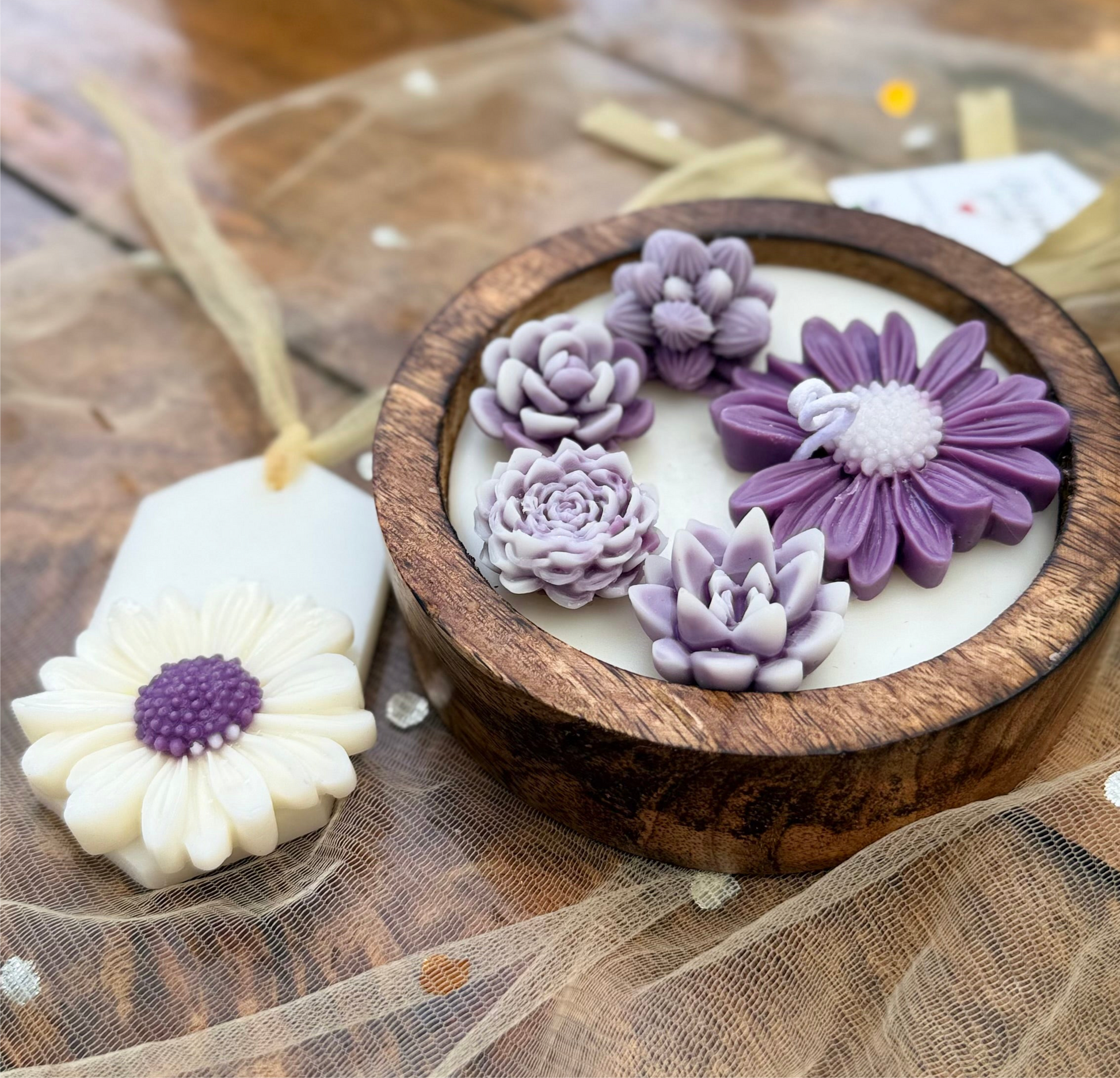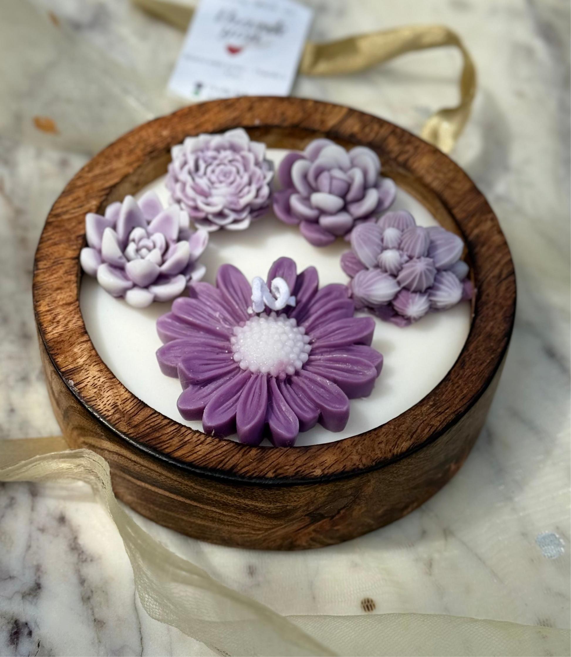 Indulge in the luxurious, sensual scent of Midnight bloom candle. Made of pure soy wax, the Purple flowers on white base design adds a touch of elegance to any room. The warm glow and fragrant aroma will transport you to a state of pure relaxation and indulgence. Perfect for a peaceful evening in on our luxurious sheesham wood.