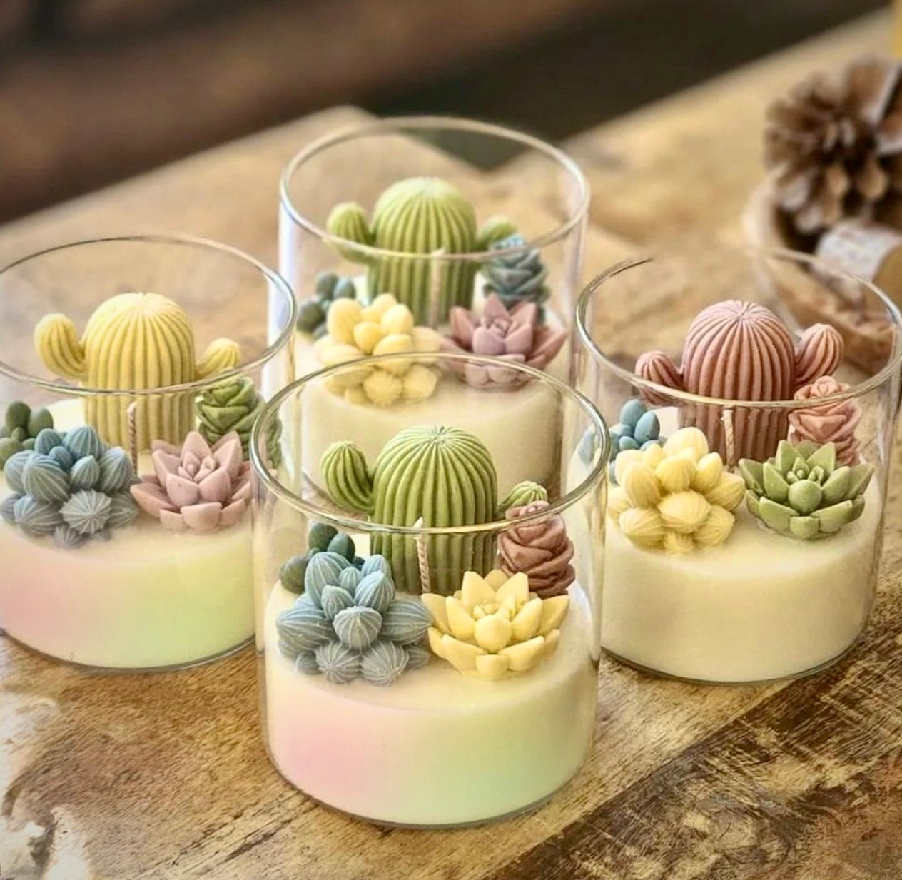 A handcrafted botanical candle featuring lifelike wax succulents and cacti, nestled in creamy soy wax. Encased in clear glass with “The seasons don’t naturally” engraved and the Firefly mark, it brings calm, earthy charm to any space.