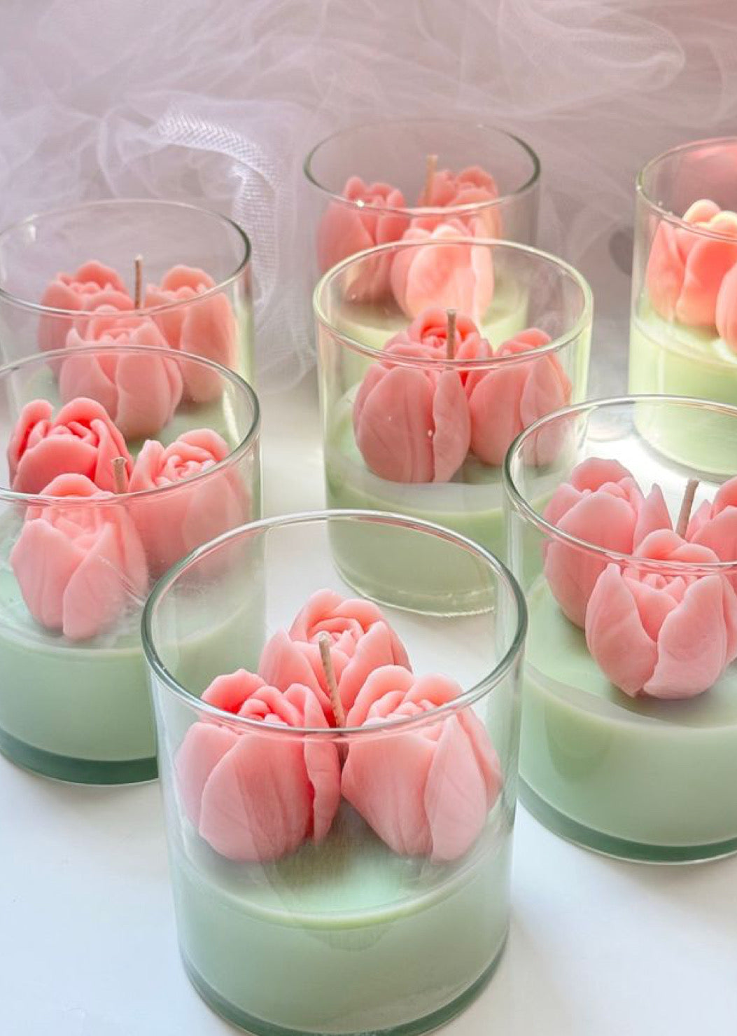A dreamy blend of pastel elegance and floral artistry, Tulip Reverie is a handcrafted soy wax candle adorned with sculpted tulip blooms. Each piece is a celebration of springtime serenity—perfect for gifting, décor, or mindful rituals.